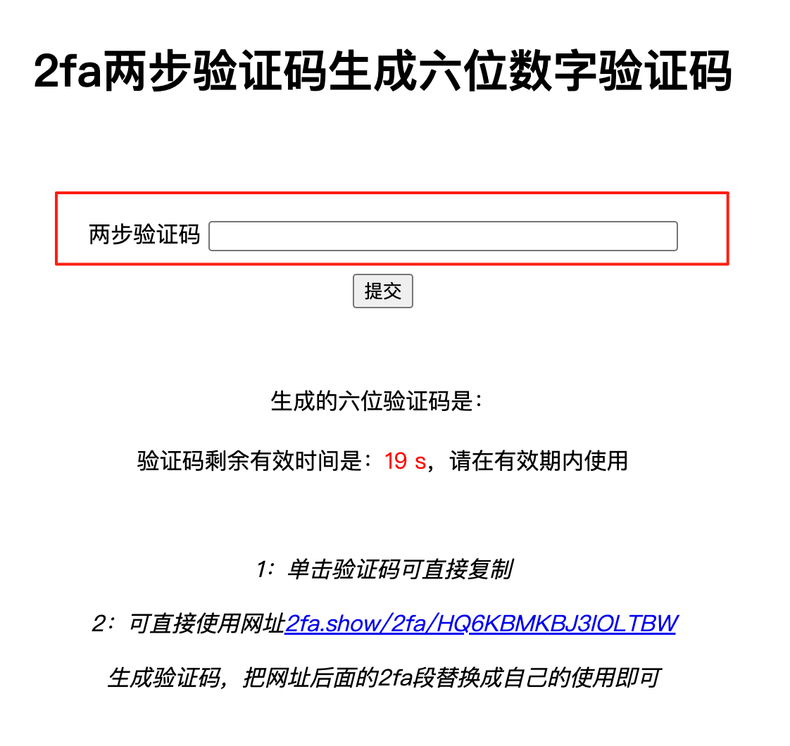 把你买的账号信息里面的【2FA】复制粘贴到上面的链接里,然后获取登录需要的数字验证码!