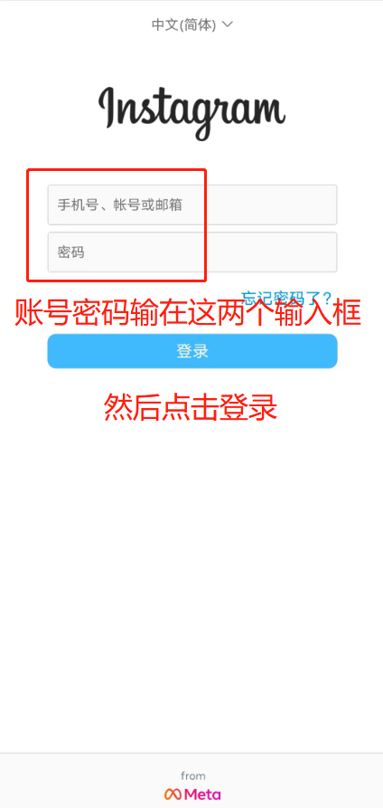 第1步:把INS登录账号、密码在INS的APP里面输入(如下图)